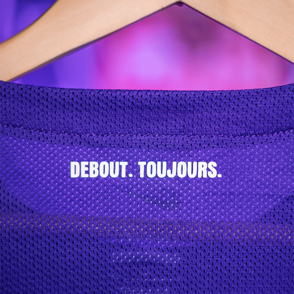 Une écharpe dans laquelle le logo de notre fournisseur exclusif vient se broder, pour répondre au logo 3D en satin et silicone du Toulouse Football Club, thermocollé à l'exact opposé, côté cœur. Les détails, réduits à leur minimum pour offrir un maillot épuré, se concluent à l'arrière du col, où figure la devise du Toulouse Football Club, "Debout. Toujours." dans un flocage proposé en relief.
