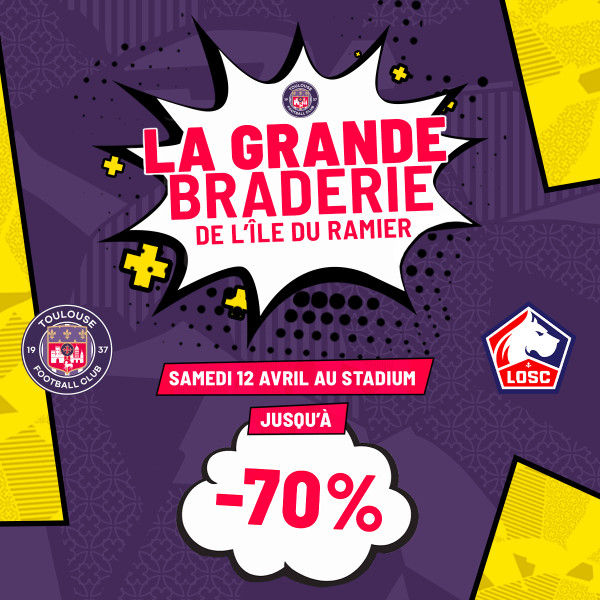 Vendredi 11 avril à partir de 11h00, ce sera votre dernière chance pour vous procurer notre maillot third réalisé en collaboration avec Visionnaire. Celui-ci sera de nouveau mis en vente dans notre boutique du centre-ville et en ligne, mais également chez Visionnaire. Ce n’est pas un secret, ce maillot third réalisé en hommage à la Cité des Violettes et à l’année 1979 du club vous a beaucoup plu et vous avez en quelques jours vidé les stocks. À sa sortie d’abord puis lors de son réassort fin mars. Mais pour les retardataires, ne vous inquiétez pas, on a pensé à vous ! Un ultime réassort est prévu et ce maillot fait son retour à la vente à partir de ce vendredi 11 mars dès 11h00 dans notre magasin du centre-ville, 54 rue de Rémusat, sur notre boutique en ligne ainsi que chez notre partenaire Visionnaire, 23 rue des Puits Clos ! Enfin, pour celles et ceux qui viendront samedi encourager nos Violets face à Lille à 19h00 au Stadium, vous pourrez dès 17h00 retrouver notre maillot third “joueur” dans notre boutique et dans nos Botiga sur le parvis, sans oublier aussi notre maillot third gardien pour lesquels nous restent de grandes tailles (XL et XXL uniquement). Attention, pour des raisons de logistique, nos équipes ne pourront pas assurer le flocage de vos maillots le jour du match. Les soldes avant l’heure ! La fin de saison approche et pour la réception de Lille, dont la ville est reconnue pour sa traditionnelle braderie, le TéFéCé a décidé de lancer la grande braderie de… l’île du Ramier ! Celle-ci se situera à côté de la Guinguette Chez Tonton. Maillots, équipements, écharpes ou accessoires, il y en aura pour tous les goûts et à des prix très, très accessibles ! Vous profiterez de réductions exceptionnelles allant jusqu’à -70% sur des centaines d’articles et bénéficierez par exemple de -50% sur notre maillot away Nike x TéFéCé !