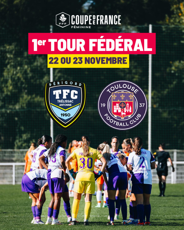 Le tirage est tombé, nos Violettes affronteront le Trélissac Antonne Périgord FC pour le premier tour fédéral de Coupe de France. Dans le cadre du premier tour fédéral de la Coupe de France, nos Violettes se déplaceront en Dordogne le 22 ou 23 novembre prochain où elles affronteront le Trélissard Antone Périgord FC, un club de Régional 2. La saison dernière, nos joueuses avaient brillamment atteint les Quarts de Finale, ne s’inclinant que d'un petit but d'écart face au Havre (1-2, une équipe d'Arkema Première Ligue) après un parcours remarquable.Nous leur souhaitons bon courage pour cette nouvelle aventure, qui promet encore de belles émotions et, nous l’espérons, de nouveaux exploits !
