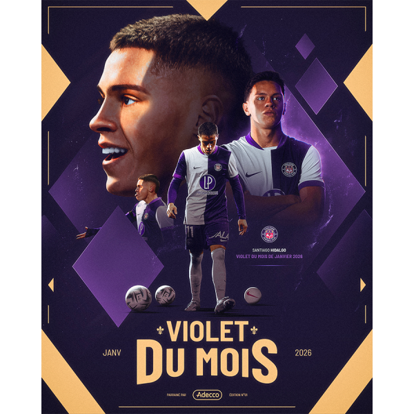 Pour le grand retour du "Violet du mois" après plusieurs années d'absence, le Toulouse Football Club tient son premier gagnant ! Pour le mois de janvier, c'est notre attaquant argentin Santiago Hidalgo qui rafle la mise ! Un mois de janvier XXL. Pour le grand retour du "Violet du mois", c'est notre serial buteur argentin Santiago Hidalgo qui remporte le trophée. Auteur de 3 réalisations toutes compétitions confondues (2 en Ligue 1, une en Coupe de France), le natif de Santiago del Estero a débuté l'année 2026 de la meilleure des manières, devenant ainsi l'artisan majeur de la belle forme actuelle de nos Violets. Au décompte des votes, il devance notre dernière recrue Demba Diop ainsi que Yann Gboho et Guillaume Restes, tous trois nommés à ses côtés. Désormais, rendez-vous en avant-match de TéFéCé-Auxerre, ce dimanche au Stadium (17h15) pour voir "Santi" brandir son trophée et tout faire pour aller chercher 3 points extrêmement précieux pour la suite de la saison aux côtés de ses coéquipiers !