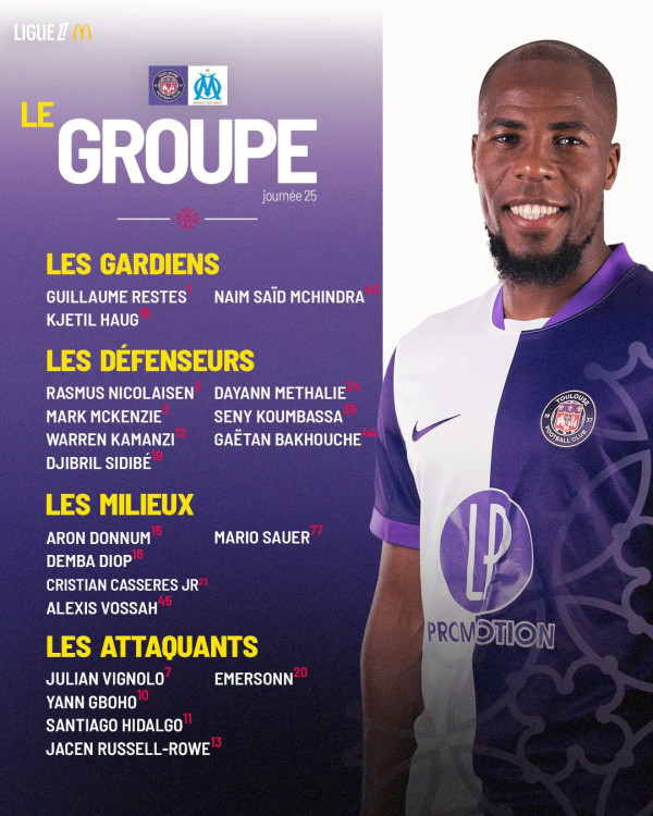 Découvrez le groupe toulousain pour affronter l'Olympique de Marseille ce samedi au Stadium à 21h05 !