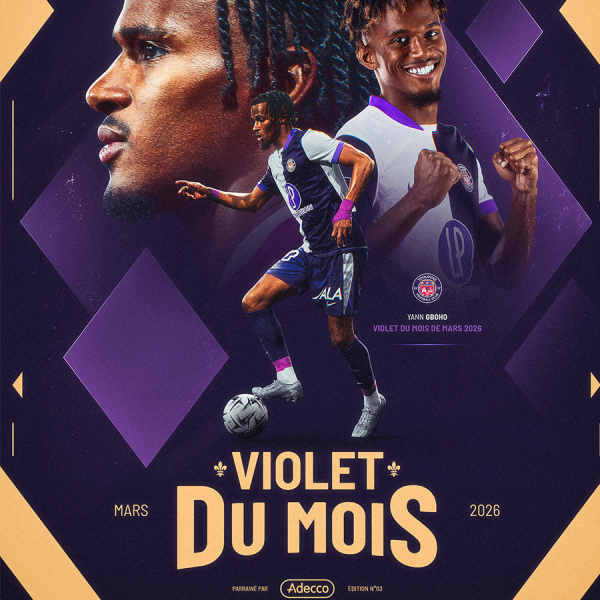 Plébiscité aux côtés de trois autres coéquipiers et auteur d'un mois de mars XXL, Yann Gboho remporte le titre de "Violet du mois" pour la première fois ! La première d'une longue série ? Auteur d'un mois de mars XXL, Yann Gboho remporte le titre de "Violet du mois" de mars pour la première fois de sa carrière. Avec trois réalisations au compteur sur la période, dont une lors de la magnifique qualification de nos Toulousains en demi-finale de la Coupe de France face à l'Olympique de Marseille, c'est assez logiquement que notre attaquant devance Cristian Casseres, Rasmus Nicolaisen et Demba Diop. Désormais, rendez-vous en avant-match de TéFéCé-LOSC, ce dimanche au Stadium (17h15) pour voir notre Yann Gboho national brandir son trophée et tout faire pour aller chercher 3 points extrêmement précieux pour la suite de la saison aux côtés de ses coéquipiers !